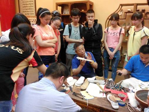 内联升第四代传人为同学们介绍“千层底”的制作工艺
