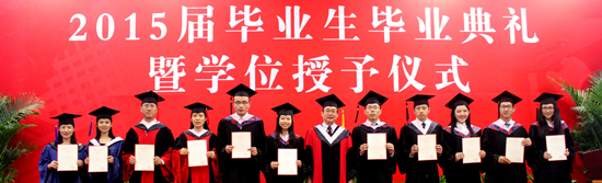典礼开始前,学院精心准备的往日校园生活照片集锦和视频“年华政好,青春飞扬”展现在了毕业生们面前,深情的回顾立刻将同学们拉进了对往事的追忆中,照片和视频中浮现出曾经的点点滴滴深深感染了现场的每一位同学。在庄严的国歌声中,典礼正式拉开帷幕。党总支书记吕丽宣读《关于2015届本科生毕业及授予学士学位的决定》和《关于2015届研究生毕业及授予学士学位的决定》,党总支副书记栗玉香宣读《关于表彰2015届本科优秀毕业生的通知》及《关于表彰2015届优秀毕业研究生的通知》。赵景华院长和王吉府教授先后为beat365市级优秀毕业生和校级优秀毕业生颁发荣誉证书并合影留念。