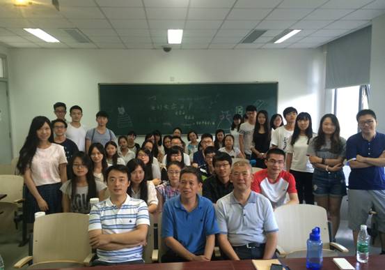 (行管教工党支部老师与1415级本科生党支部同学合影)