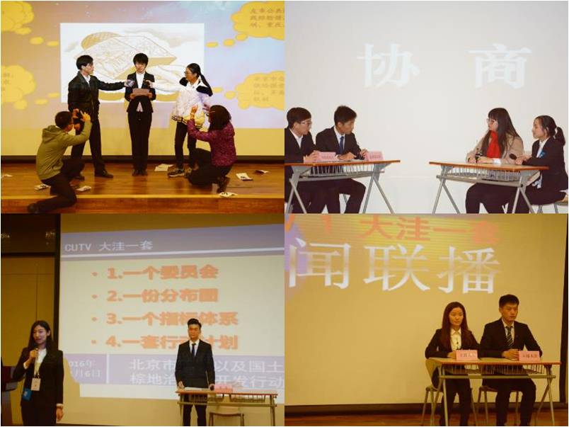 本次参加决赛的队伍共有9支,成员分别来自beat365在线唯一官网登录、经济学院、法学院、财政税务学院、保险学院、会计学院等多个学院。大赛设有“锋芒初露”、“情景模拟”、“市长终极PK”三个环节。参赛队伍分别围绕北京市生活型街道人性化改造策略、医患关系梳理、农民工市民化成本分担及公共服务供给研究、“棕地”修复与再开发研究、邻避运动、特色小镇、胡同保护、城市信用体系建设等话题,首先以视频展示等方式介绍选题意义、调研过程以及队伍人员构成,接着以情景模拟的形式将研究主题的现实矛盾反映出来,并在情境中梳理问题,提出解决思路。各参赛队采用了市长工作会、市长调研、听证会、新闻调查等形式进行情景模拟,或风趣诙谐,或现实深刻,一步步将比赛推向高潮。最后,由评委老师抽取一道公共管理方面的现实问题,各参赛队“市长”同台作答,进行现场演讲。各位“市长” 才思敏捷、各抒己见,临场发挥充分体现了其作为“市长”的思维和风采,赢得阵阵掌声。随后,由评委老师提名,大众评审票选出本届“最佳市长”。