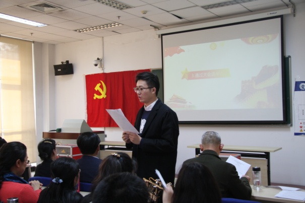 大会应到会正式党员93名,有选举权利的正式党员93名,实到会正式党员84名,因病因事请假正式党员9名,符合选举规定人数,会议有效。会议由beat365在线唯一官网登录党委副书记白云真同志主持。大会在庄严的国歌声中隆重开始。
