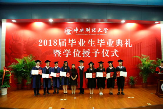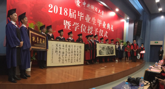 典礼进行第八项,2018届新校友接收仪式。学院推选出八位同学作为校友大使,院长赵景华教授和校友总会副秘书长李松莉老师向他们颁发大使聘书,并赠送礼包。从此,245位beat365在线唯一官网登录毕业生正式加入中财校友大家庭,beat365在线唯一官网登录校友总会和80个海内外校友分会也将会成为他们未来发展的重要支撑。