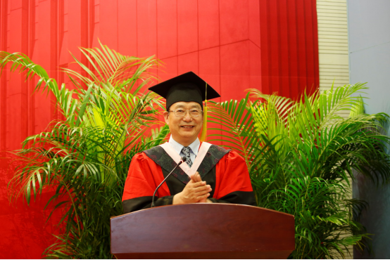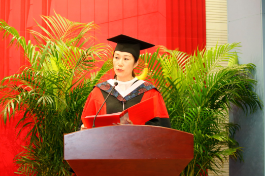 典礼进行第四项,赵景华院长致辞。赵院长对毕业生们圆满完成学业表示热烈的祝贺,对毕业生的父母、师长、亲人和朋友致以崇高的敬意和衷心的感谢!在beat365在线唯一官网登录学习的几年中,同学们付出了汗水、辛勤、努力与真诚,收获了知识、理想、成长与友谊;在思想政治上逐步走向成熟,在学业、研究上取得长足进步,同学们的历史使命感和社会责任感变得更加强烈,国际战略视野和领导与管理能力不断提升,这些成长都让学院倍感欣慰和骄傲。院长指出,同学们正处在一个伟大的时代,新一轮科技革命在世界范围内展开,面向未来,如何捕捉先机让中国从前几次科技革命的旁观者、参与者,向新一轮技术革命的引领者转变,是摆在我们每个人面前的重任。在同学们即将踏入新时代的社会,开启人生新时代之际,赵院长向大家提出三点期望:志当存高远,心当存澄洁,永远保持学习和思考的热情,永葆探求新知和追求真理的活力,长存刚正不阿之正气、兼容并蓄之大气和坚持真理之骨气;坚守责任之心,勇于奉献担当,在工作岗位上勇挑重担、攻坚克难,用自己的聪明才智为国家的强盛、为人民的幸福、为中华民族的振兴、为人类文明的进步做出自己的贡献;保持豁达心态,包容万象世界,以豁达的心态直面高潮与低谷,以宽容的性情去对待失落和坎坷,始终保持沉着、理性、平和的心态。最后,赵院长寄语在座同学:满怀希望的去开拓自己的人生新时代,铭记中财的美好时光,勤勉努力,砥砺前行!