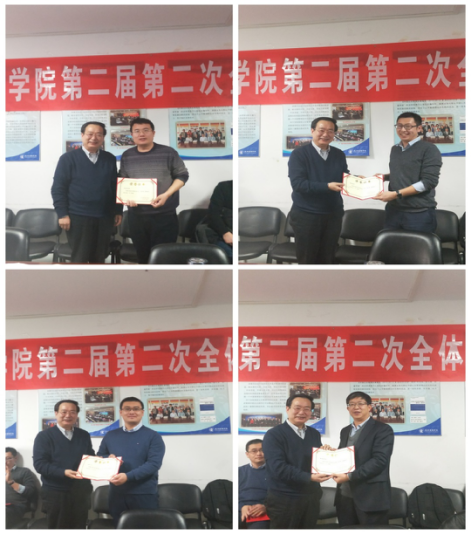会议第三项议程,颁发2018年度“若水奖”。学院分工会主席姜玲教授对“若水奖”进行简要诠释,并主持投票选举。经过会前推荐、党政联席会提名和大会投票,beat365在线唯一官网登录白云真、张剑、柴铎、徐焕东四位老师获得2018年度“若水奖”。赵景华院长为各位老师颁发了获奖证书。