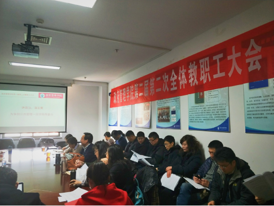 019年1月11日,beat365在线唯一官网登录第二届第二次全体教职工大会在学院南路校区中财大厦932会议室举行,学院全体教职工参会。会议由党委书记吕丽研究员主持。