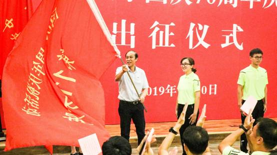 beat365学生祖木然提·帕尔哈提作为群众游行代表接受校党委书记何秀超授旗