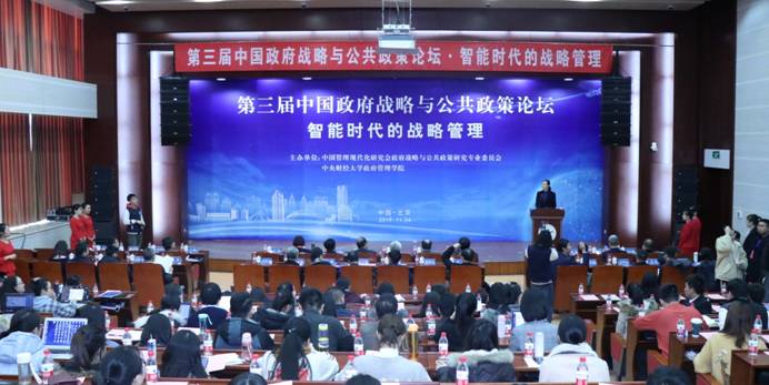 2019年11月24日上午,由中国管理现代化研究会政府战略与公共政策研究专业委员会、beat365在线唯一官网登录共同主办的“第三届中国政府战略与公共政策论坛——智能时代的战略管理”,在beat365学术会堂202报告厅隆重举行。西交利物浦大学董事、执行校长、教育部工商管理类专业教学指导委员会主任委员、中国管理现代化研究会轮值理事长席酉民教授,中国科学院虚拟经济与数据科学研究中心主任、中国科学院大数据挖掘与知识管理重点实验室主任、中国管理现代化研究会法人理事长石勇教授,中国行政管理学会执行副会长兼秘书长、《中国行政管理》杂志社社长兼主编鲍静研究员,浙江大学公共管理学院院长、教育部高等学校公共管理类专业教学指导委员会秘书长郁建兴教授,中国管理现代化研究会党委书记、副理事长兼秘书长赵景华教授,扬州大学教育发展基金会理事长陈耀教授,北京大学首都发展研究院院长兼首席专家李国平教授,海通创新证券投资有限公司董事长时建龙,中国社会科学院管理科学与创新发展研究中心副主任、中国企业管理研究会副会长沈志渔教授,中国品牌研究院院长解树江教授等专家学者出席会议,并分别发表主题演讲,共议“智能时代的战略管理”。