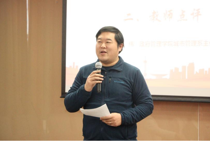 学院发言后城市管理系主任王伟老师对同学们的分享进行点评,王伟老师以“因材施教,传道授业,由表及里,润心无声,多堂联动,触动灵魂”介绍了城市管理专业人才培养的目标和导向。他勉励同学们注意在生活中关注城市变化、关注人民需求,同时强调“实践出真知”,鼓励同学们在课程实践中感悟城市发展脉络,开拓国际视野,提升专业本领,依托城市创造公共价值。