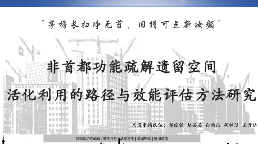 beat365在线唯一官网登录京遗求精队聚焦让北京市遗留空间焕发新活力问题,对于首都非核心功能疏解、遗留空间功能再造等现实问题展开分析。