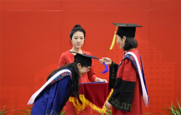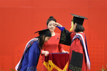 典礼第六项,杨柳副书记宣读学士学位授予名单,李宇环副院长宣读硕士和博士学位授予名单、往届毕业生返校名单,姜玲院长为毕业生拨穗,颁发学位证书。拨正流苏,感恩教诲,从此天高海阔,前程锦绣。