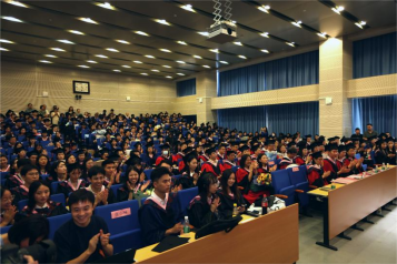 随后,姜院长指出,从懵懂青涩的少年到独立自主的青年,同学们的成长印记与世界百年未有之大变局相互交织,政管师生们一起共享了这个伟大时代的福祉荣光,也携手克服了世纪疫情冲击下的重重困难。这是不寻常的一届毕业生,入学便恰逢新中国七十周年华诞和学校七十周年生日;在新冠疫情的突袭中共克时艰,度过了云端课堂的特殊学习生活;在建党百年的荣耀时刻于天安门广场以歌献礼,送上青春的礼赞;在北京冬奥会的冰雪现场以志愿微火,践行了青年担当。即使面对重重困难和压力,同学们依然不卑不亢、不弃不馁,凭借着乐观、坚韧和勤奋,穿过迷雾、踏过征程,为自己书写了一份精彩的人生篇章。站在新征程的起点上,姜院长也向同学们提出两点期待:一是天下为公,学为家国。要树广阔胸襟、立大同理想,育和合品质,始终做公共价值的倡导者、公共精神的弘扬者,公共利益的捍卫者。二是“政”气浩然,“管”以善治。不因一时利诱而动摇,也不为一时得失所感伤,要始终有一颗关怀现实的善治之心,努力成为善治善管的思想者和实干家。姜院长温暖的话语和谆谆教诲收获了在场毕业生们多次热烈的掌声,希望同学们带着师长的嘱托和期待,怀揣青春壮志,踏上新的人生征程!
