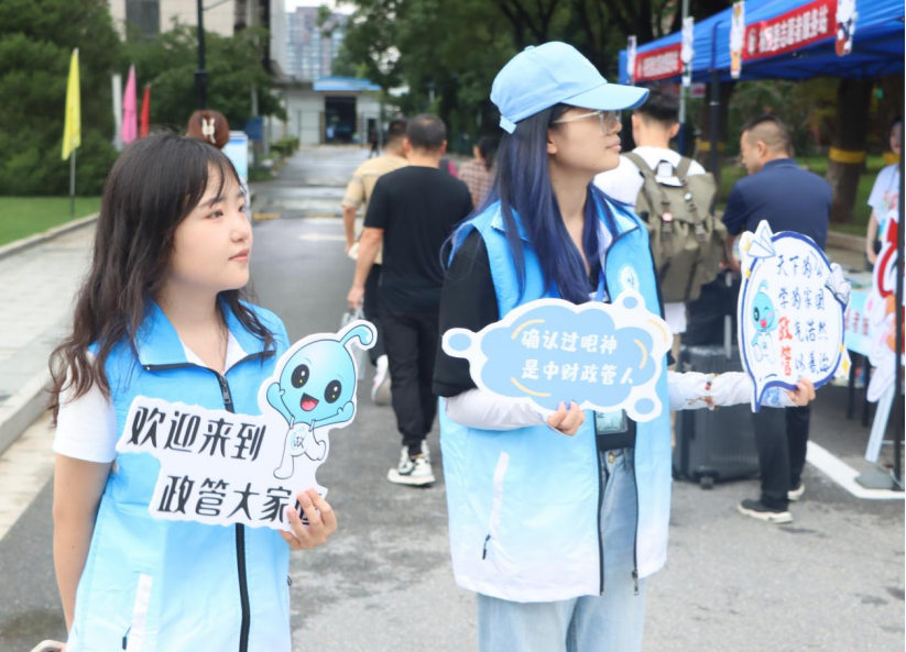 奋进“政”当时,青春当砥砺。为了热情迎接2023级本科新生,学院特意制作了精美的立牌供新生们合照。此外,由志愿者扮演的活泼可爱的学院吉祥物“政宝”也备受新生欢迎,志愿者们热心地帮助新同学们合影留念,为萌新们拍摄下与政宝的第一张合照。