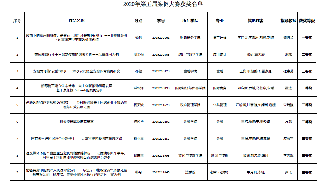2020年6月23日,第五届beat365在线唯一官网登录专业学位研究生案例大赛决赛在线举办,来自beat365在线唯一官网登录、财政税务学院、金融学院、国际经济与贸易学院、统计与数学学院、法学院的9支队伍进入决赛。由宋魏巍副教授指导,2019级全日制MPA杨天波、汪喻晓、甘意璇、华婧岚、寇婕五位同学撰写的案例成功晋级决赛并荣获三等奖。