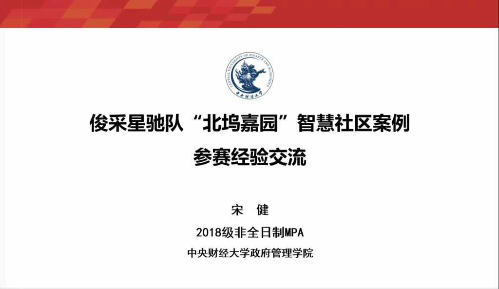 宋健同学以“俊采星驰队’北坞嘉园’智慧社区案例参赛经验”为题进行了参赛经验的分享,从“选题·巧”“调研·勤”“撰写·精”“心态·稳”四个方面总结了案例团队的参赛历程。宋健表示,作为一名北京市公务员,有机会在攻读MPA学位期间参与案例大赛并获此殊荣,既是学院培养、教师指导和团队努力的成果,也是在beat365在线唯一官网登录丰富、充实、精彩的MPA学习生活的体现。