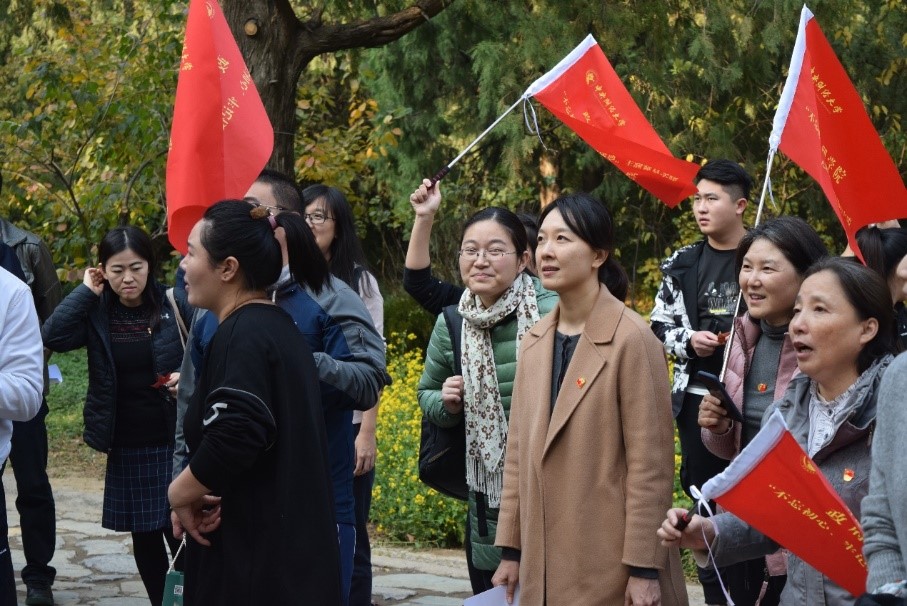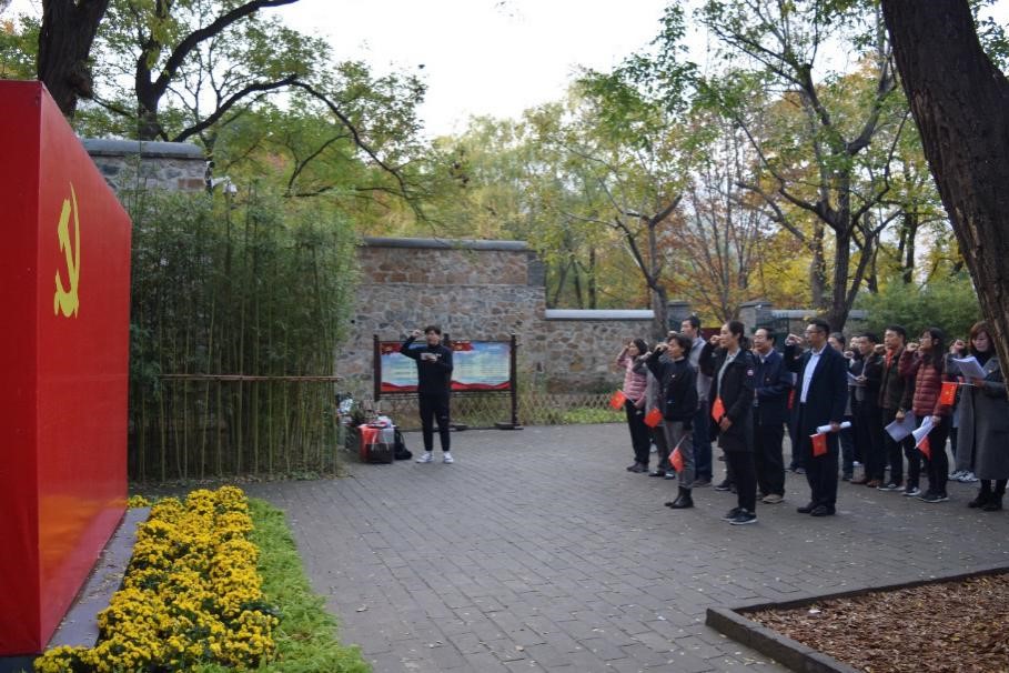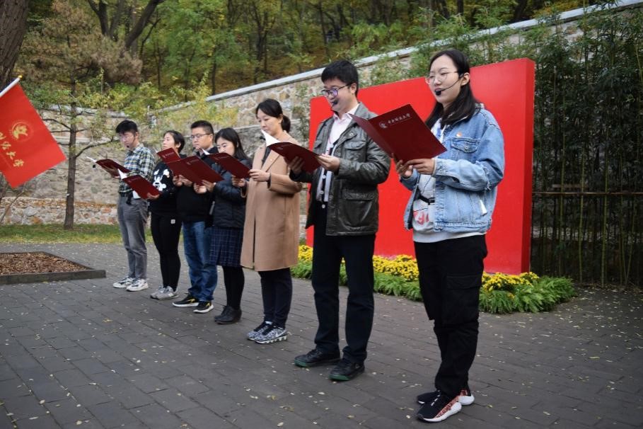 离开双清别墅后,全体党员共同参观中共中央“四大书记”的住地来青轩,并于中央警卫团住地的院子里集合,在本科生党支部书记李莎莉老师的主持下,开展诗歌朗诵、重温入党誓词和歌唱祖国三项活动。