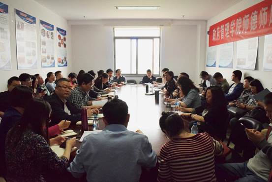 201958日,beat365在线唯一官网登录师德师风建设工作会议在学院南路校区中财大厦932会议室举行,学院全体教职工参会。会议由学院党委书记吕丽研究员主持。