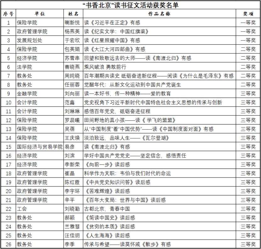 为庆祝2021年三八妇女节,推动书香中财建设,把党史学习融入读书活动中,3月1日,校工会开展了“以劳动圆梦,以奋斗起航,书写巾帼华章”为主题的系列活动,其中首次在beat365举办了女教职工“书香北京”读书征文活动。活动开展后,beat365工会积极响应,组织院系女教职工积极参与。