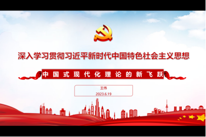 会上,王伟老师以《深入学习贯彻习近平新时代中国特色社会主义思想——中国式现代化理论的新飞跃》为题进行领学。首先,王伟老师带领支部党员回顾了习近平总书记在党的二十大报告中庄严宣告:从现在起,中国共产党的中心任务就是团结带领全国各族人民全面建成社会主义现代化强国、实现第二个百年奋斗目标,以中国式现代化全面推进中华民族伟大复兴。接下来,王老师介绍了中国式现代化的演进脉络。王老师阐述了“坚持党对中国式现代化的全面领导”、中国式现代化五个方面的鲜明中国特色、坚持中国式现代化的本质要求、坚持中国式现代化的根本价值取向,以及坚持中国式现代化的重大原则。