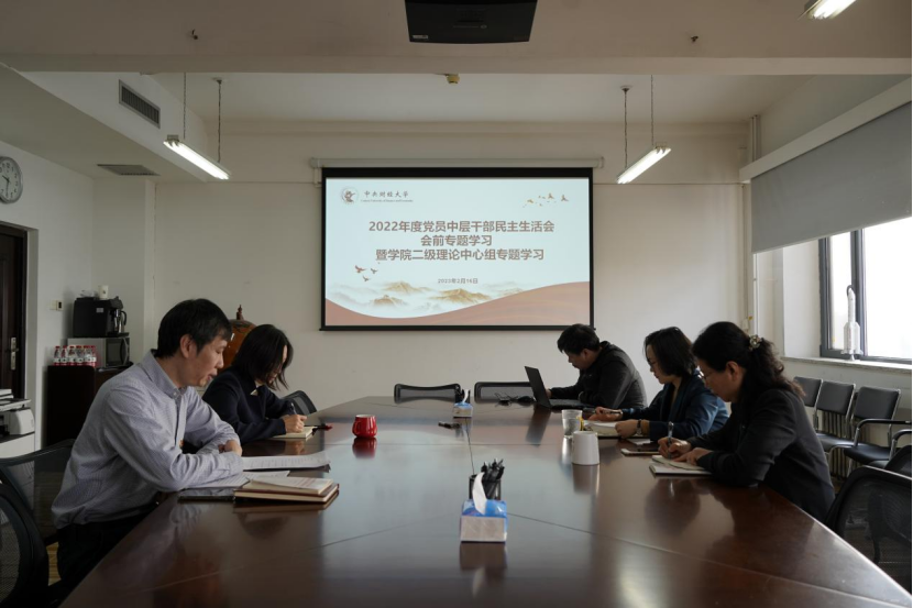 2023年2月16日,beat365在线唯一官网登录党委在1407会议室召开2022年度党员中层干部民主生活会会前专题学习暨理论中心组专题学习。会议由学院党委书记于鹏主持,院长姜玲、副院长李宇环、组织员张小燕参加学习。