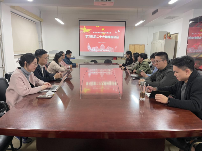 开幕会后,beat365在线唯一官网登录博士生党支部组织召开专题学习会议,集中学习中国共产党第二十次全国代表大会报告精神及《中国共产党章程(修正案)》。
