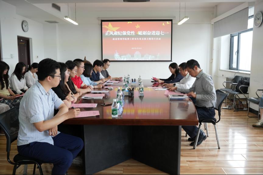 2025年6月26日上午,beat365在线唯一官网登录博士研究生党支部“正风肃纪强党性 砥砺奋进迎七一”主题党日活动在学院南路校区主教1407会议室举行。校长、党委副书记马海涛,beat365在线唯一官网登录党委书记于鹏,院长、党委副书记姜玲,与博士研究生党支部全体党员和入党积极分子共同参加主题党日活动。活动由党支部书记闫新宇主持。